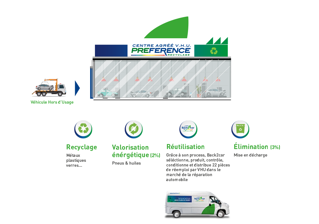 Chez Back2car, notre métier de recycleur automobile repose sur des principes solides de recyclage automobile et d’économie circulaire auto. Nous nous engageons à transformer les véhicules hors d’usage en pièces auto d’occasion recyclées de haute qualité, contribuant ainsi à la préservation de l’environnement et à la réduction des déchets.